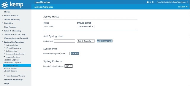 In the LoadMaster Syslog Options, we are sending the syslog outputs to the Logstash server, as shown in Figure 1.