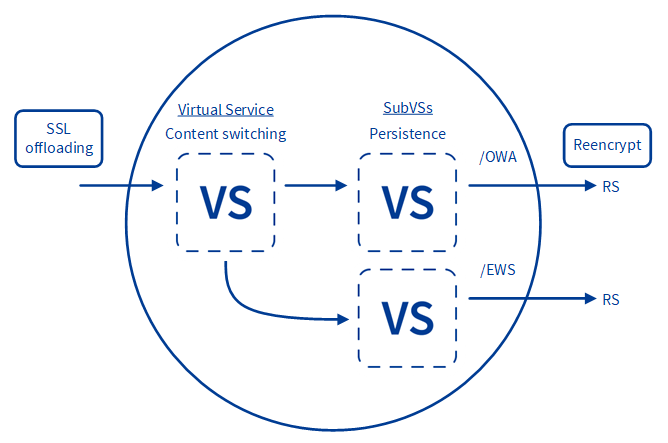 Content-Switching hat sich weiterentwickelt, um Anfragen basierend auf einer Vielzahl von Kriterien wie z.B. Hostnamen, URLs oder Header an verschiedene Server (Virtual Services) weiterzuleiten. Diese werden wiederum in SubVS (Sub Virtual Services) mit spezifischen Aufgaben und Funktionen unterteilt. Eine Anfrage wird also an den SubVS weitergeleitet, der sie am besten bearbeiten kann. So wird eine größere Flexibilität in der Servicearchitektur erreicht; beispielsweise können verschiedene SubVSs individuelle Zustandsprüfungen durchführen.