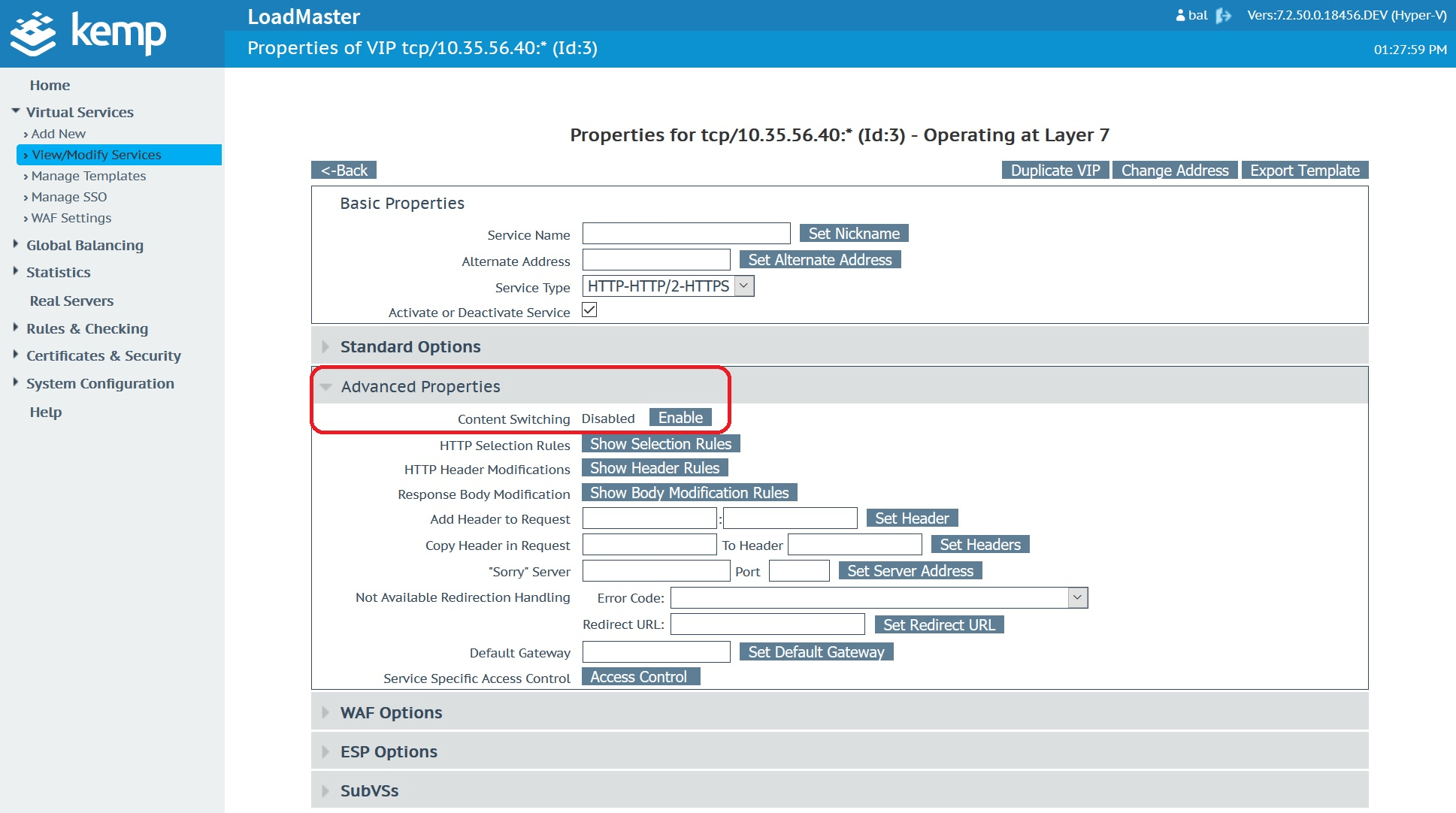 Once content switching is enabled, you’ll now see the option to apply it to your sub virtual service.