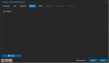 6. Festplatte initialisieren: Klicken Sie auf „Hinzufügen“, um die Festplatte zu initialisieren. Die Standardkonfiguration ist in den meisten Fällen ausreichend, andere Einstellungen sind aber möglich. In unserem Beispiel haben wir „Discard“, „IO-Thread“ und „SSD-Emulation“ aktiviert. Hinweis: „Discard“ und „IO-Thread“ geben dem Betriebssystem Informationen über die Leistungsfähigkeit der Festplatte; die tatsächliche Nutzung hängt vom OS ab.