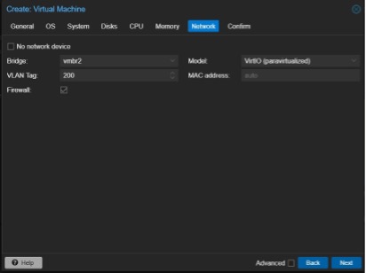 Optional kann ein VLAN-Tag pro Interface vergeben werden. In unserem Beispiel haben wir außerdem den Netzwerktreiber auf VirtIO (paravirtualized) geändert, um die beste Netzwerkleistung zu erzielen.