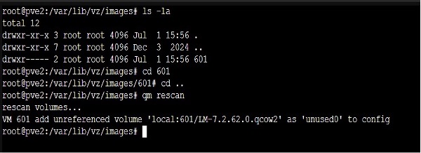 Anschließend muss aus demselben Terminal der Befehl ausgeführt werden: qm rescan
