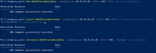 In the Export-OWASPCustomRuleSet command, I am exporting/saving locally the file to c:\temp\ps_work\exported_rules.conf.