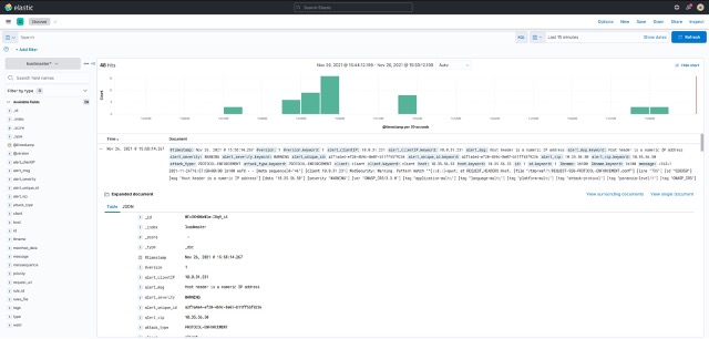 Now that I have WAF enabled on the Virtual Service and LogStash receiving, parsing, and forwarding events, I start to receive those parsed syslog events in Kibana as shown in Figure 8.