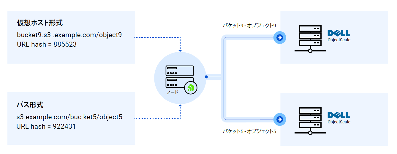 ObjectScale は現在、パス形式と仮想ホスト形式の2つのアドレス指定方法をサポートしています。「XOR」ストレージの効率性と地理的分散を必要とする、複数サイトで構成されるほとんどの ObjectScale 環境で、両方の方法をサポートする必要があります。LoadMaster には、S3 アドレス指定方法自動検出機能があり、ObjectScale ソリューション全体で最適化されたオブジェクトの分散を提供するとともに、シンプルな設定で両方のアドレス指定方法をシームレスに使用できます。
