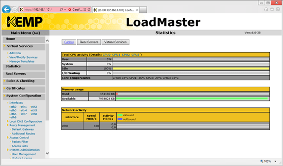 Figure 2: The LoadMaster Statistics page in the configuration interface