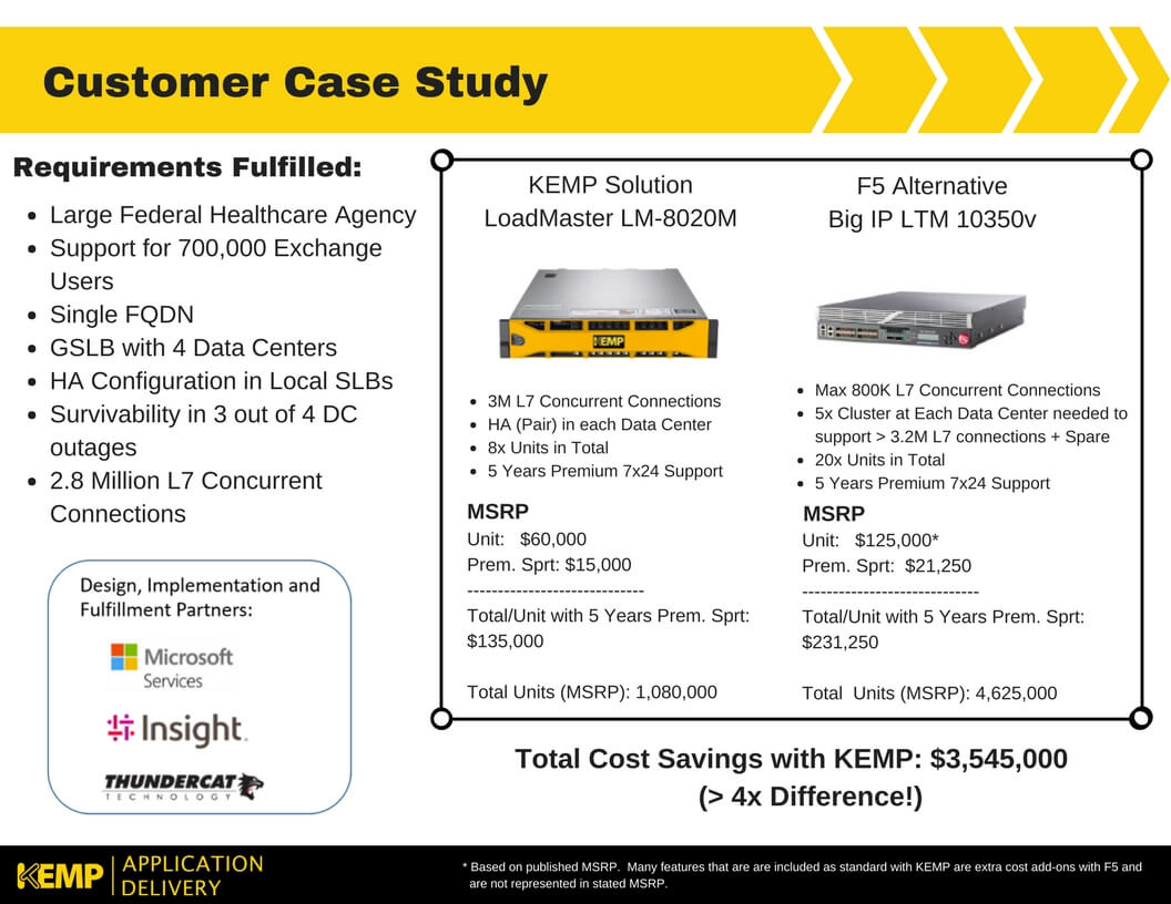 Kemp’s LoadMaster Application Delivery Controllers (ADCs) have been evaluated by a broad number of US Department of Defense, Intelligence Community, and Federal Civilian agencies and selected over competitors for great value pricing, features and functions, ease of use, and outstanding support services.