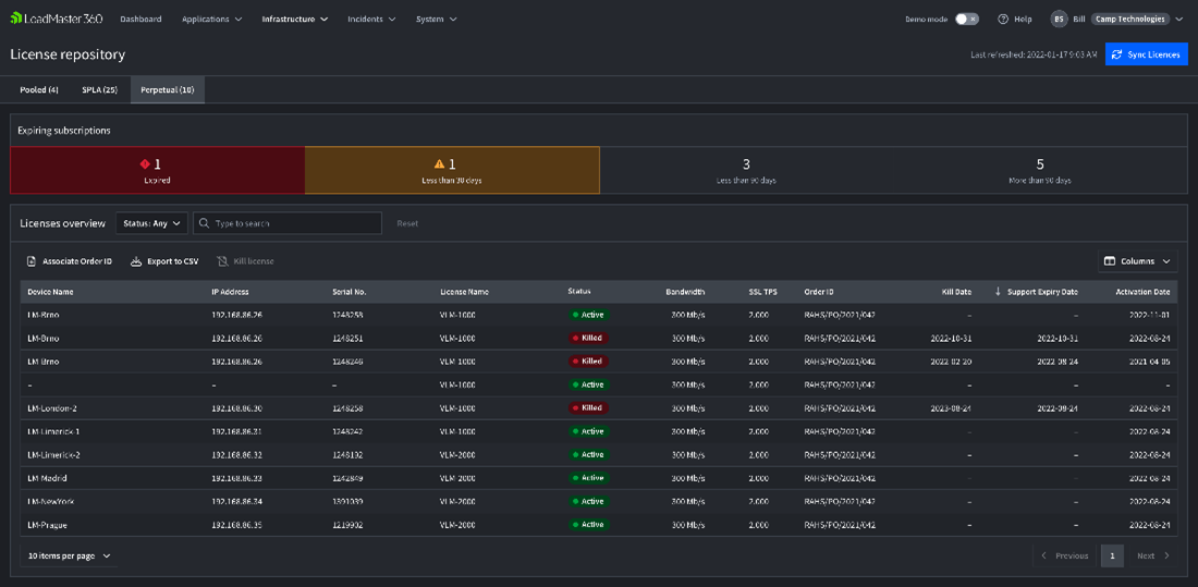 LoadMaster 360 is a cloud service that operates securely through connectors to manage LoadMaster devices anywhere. It supports multiple sites to cater to multi-cloud and hybrid-cloud environments. We also provide License Management capabilities to enable our users to be more flexible with how you deploy and use LoadMaster(s) in your estate. This allows licensing on-demand of LoadMaster instances when needed and the recovery of the license for reuse when LoadMaster instances get decommissioned.